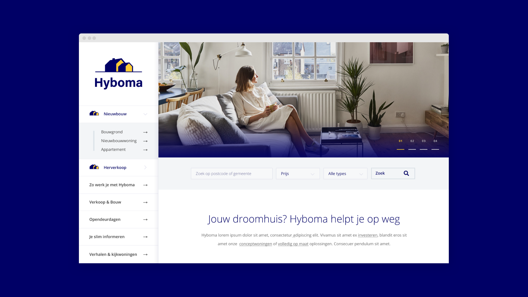 Website design for Hyboma, a flemish real estate agency that has been building sustainable and high-quality homes for two generations since 1968.